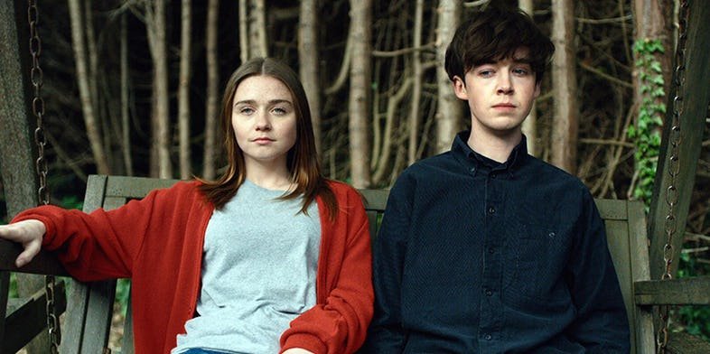 It’s about two people so broken they don’t function alone, but together they can shine. A Bonnie and Clyde love story, with UK accents and a John Hughes with bad language vibe. It works well enough to keep you going episode to episode and has moments of true genius that pop up amongst the endless tropes and references to other teen iconography. It pays homage like a Tarantino film, in a very post-modern way, to so many sources, but always retains enough style and originality to be it’s own thing.